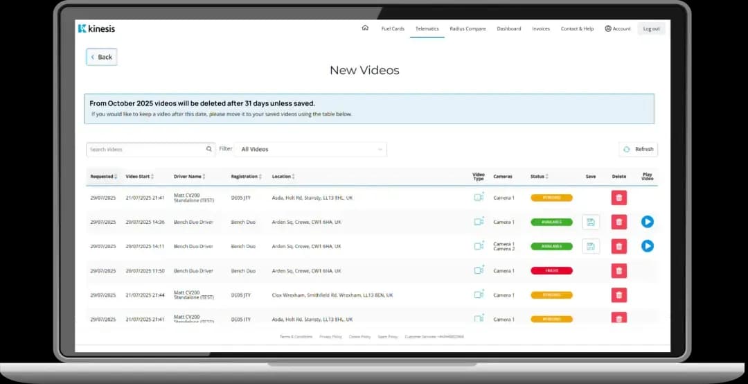 Wir verbessern die Kinesis Pro-Plattform kontinuierlich, um dir eine effektivere Verwaltung deiner Flotte zu ermöglichen. Lies unten mehr über die neuesten Updates und Verbesserungen.