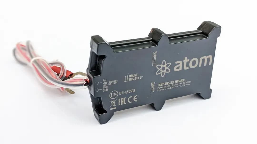 The atom-e is a compact and user-friendly GPS tracking device powered by your vehicle's battery, offering seamless integration and reliable performance.