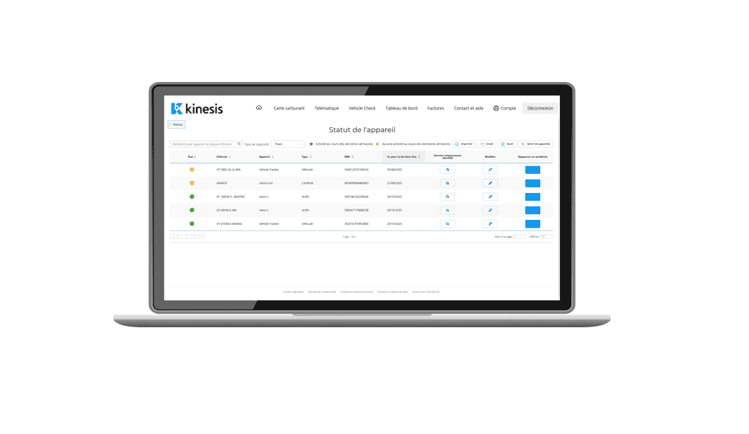 O recurso «Painel de Saúde do Dispositivo» do Kinesis foi atualizado para incluir todos os tipos de dispositivos, incluindo localizadores de veículos e ativos.