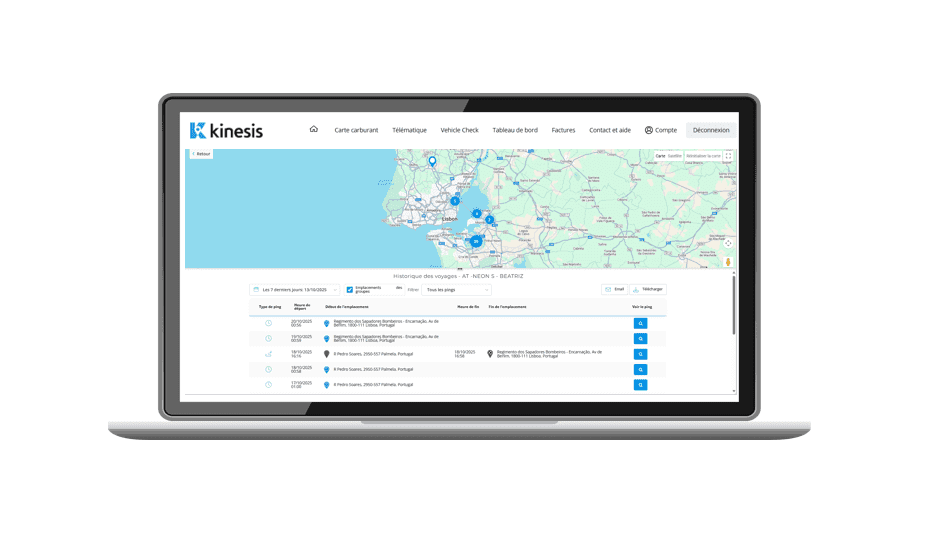 A funcionalidade «última localização conhecida» está agora disponível para todos os utilizadores Kinesis. Esta atualização melhora a forma como os dados do sinal GPS são apresentados, proporcionando-lhe uma melhor visibilidade e precisão de localização.